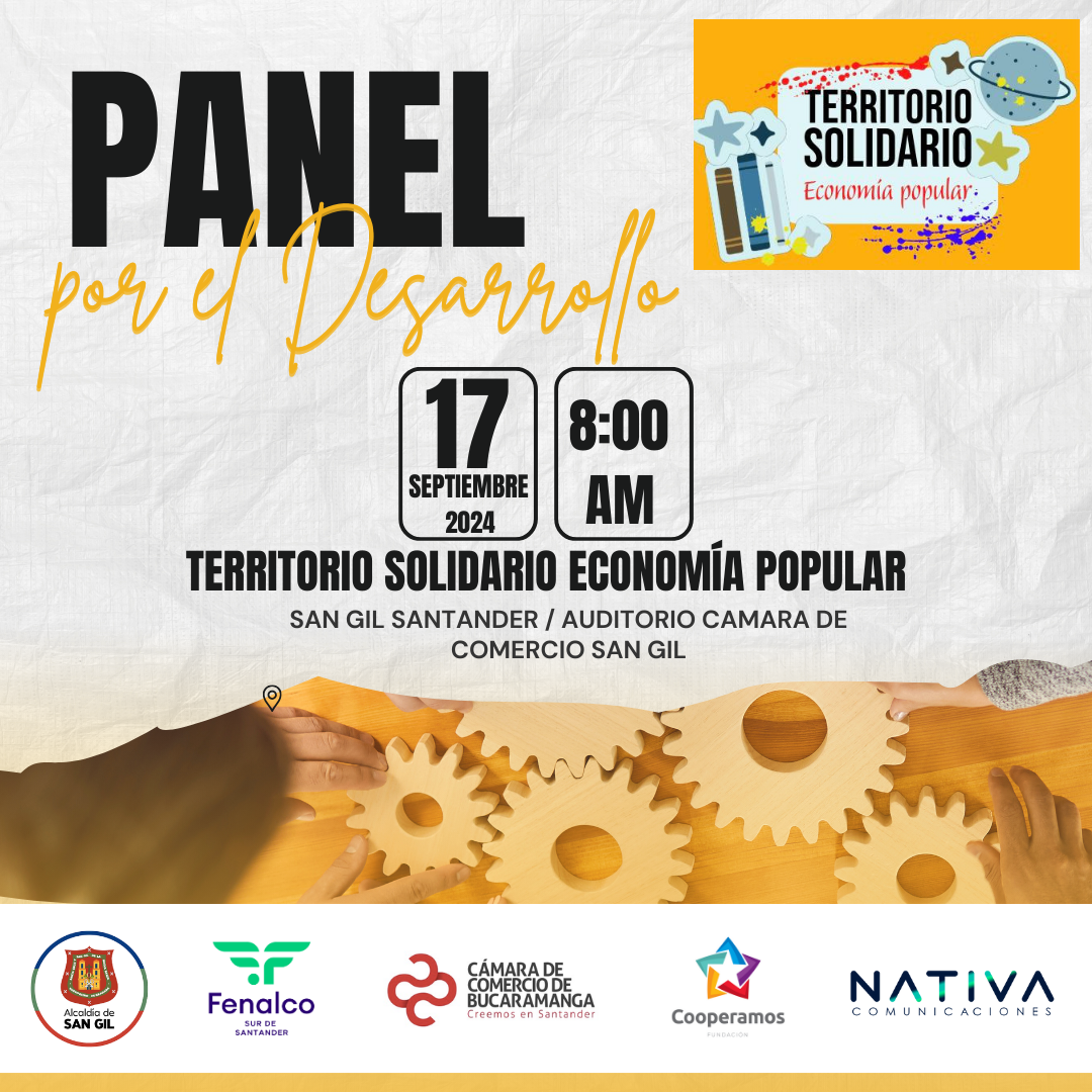 El pasado 17 y 24 de septiembre de 2024, Cooperamos Fundación en alianza con Nativa Comunicaciones organizó los paneles sobre «Territorio Solidario Economía Popular y Educación para el Desarrollo Territorial» en la Cámara de Comercio de Bucaramanga Seccional San Gil. Estos paneles reunieron a expertos y líderes comunitarios para discutir estrategias de desarrollo sostenible y la importancia de la economía solidaria en la región.